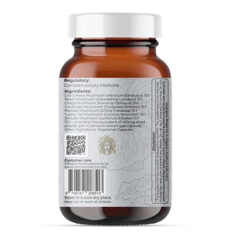 This synergistic blend of seven medicinal mushrooms is designed to support immune function, energy, and cellular health — offering natural resilience when your body needs it most.